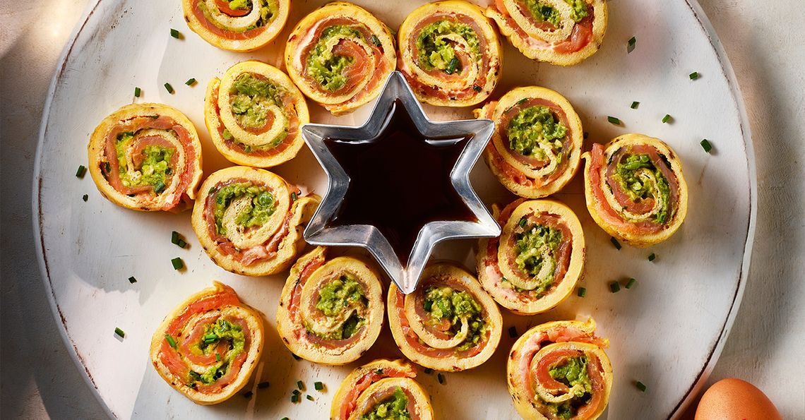 Delicate salmon, pea and avocado egg rolls are a fresh, elegant bite combining creamy avocado, sweet peas, and smoked salmon wrapped in a soft egg crêpe. They shine alongside a bright cranberry sour, with zingy berry notes that cut cleanly through the richness for a refreshing festive pairing.