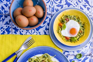 We have a wide range of recipes for babies at all stages of development - including simple and soft-textured poached or scrambled egg with pureed peas, as well as omelettes, frittatas and egg muffins that are ideal finger foods for baby-led weaning. Eggs are a great food to mix with vegetables for extra nutrition and to encourage your baby to try new tastes and textures – try our recipe for scrambled eggs and veg or Annabel Karmel’s baked eggs and avocado boats. You’ll also find recipes for babies to try their first eggs and fruit combo with pancakes or eggy bread with fruit.