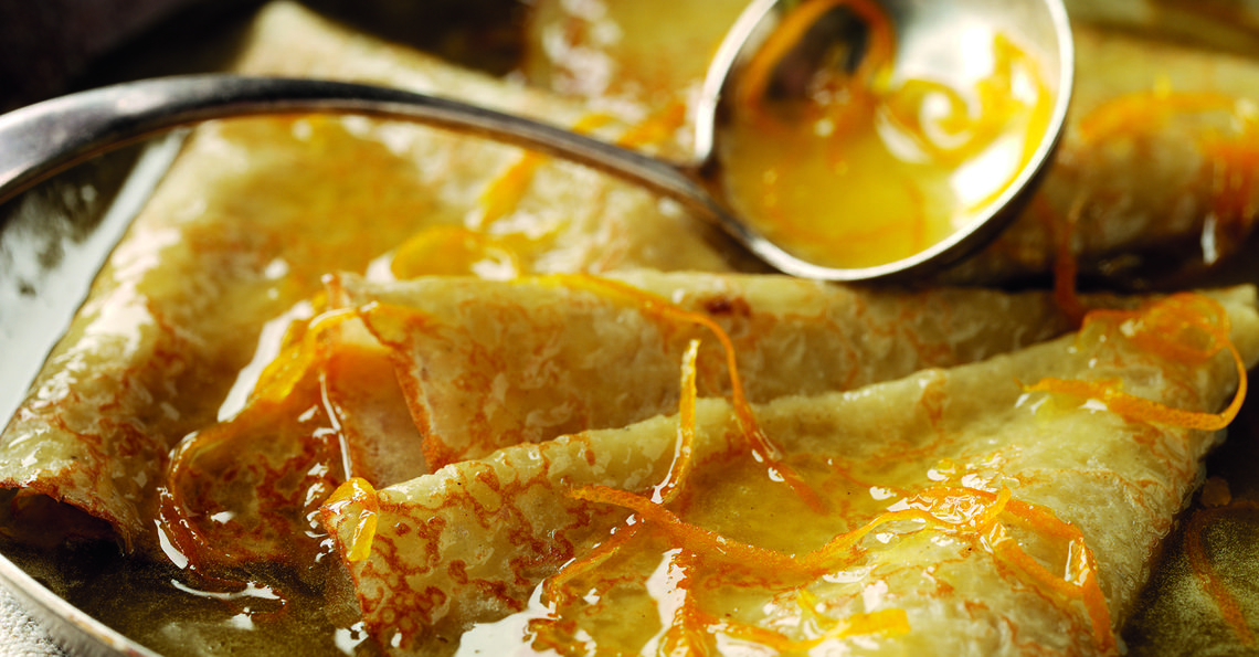 A delicious retro recipe for pancakes in a boozy orange sauce