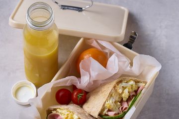 - Divide half the egg mayonnaise between two slices of bread, place one of the eggs in the centre of each, then cover with the rest of the egg mayo. Top with the slices of bread and cut in half. Wrap for a feast on the go.