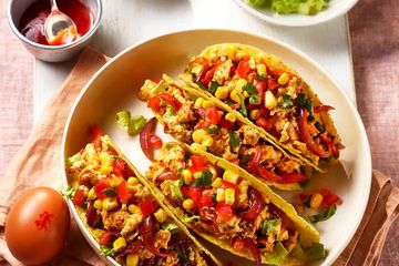 Spiced egg and veg tacos The crunchy tacos contrast well with the soft, lightly spiced scramble with colourful vegetables...